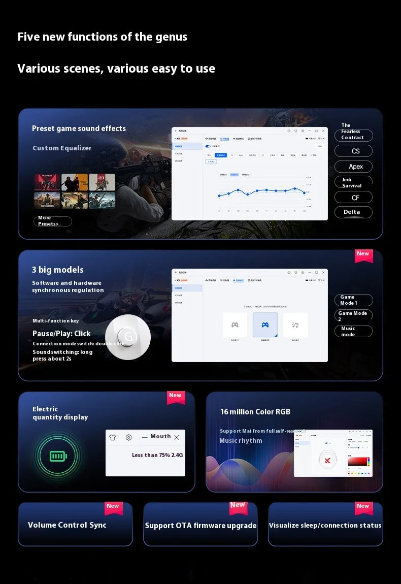 2025 Mchose X9 Headphone 3 Mode Wireless Headset Surround Sound Effect With Mic E-Sports Earphones Custom Accessories For Fps