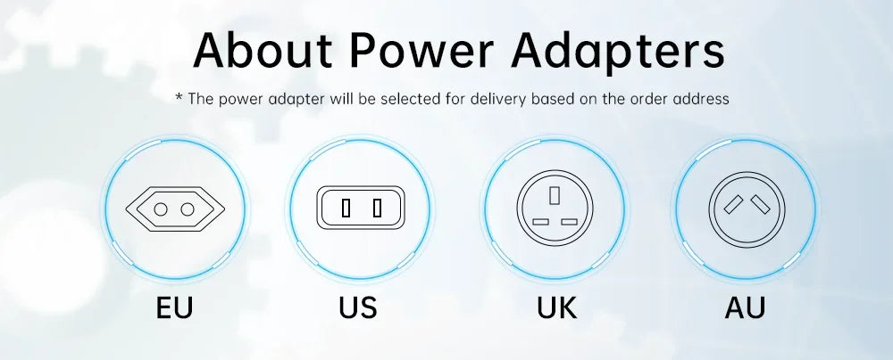 ① We have four different power supply specifications. EU/AU/US/UK/JP