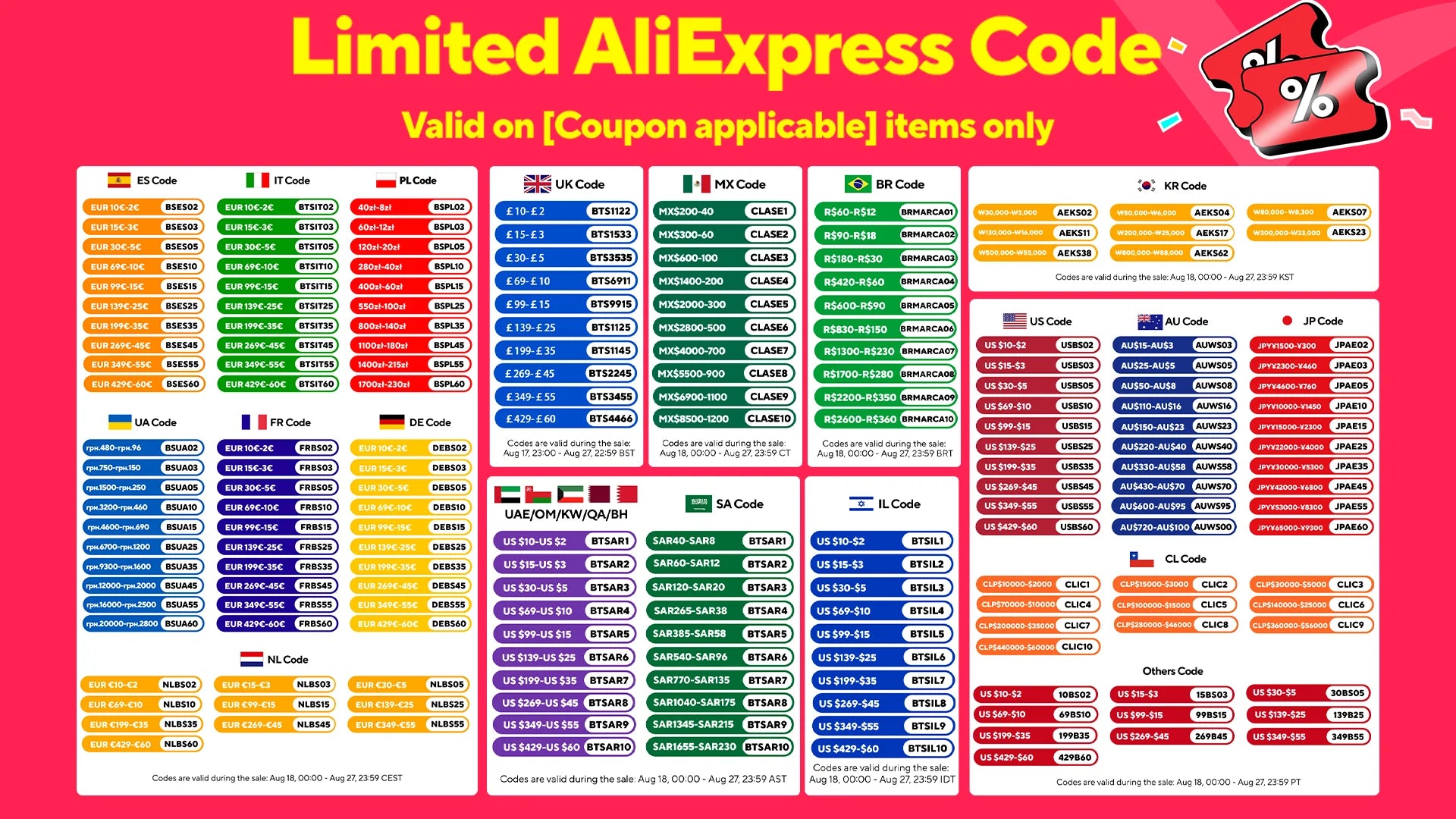 The code takes effect at different times in each country, so please check carefully, we hope all my friends can buy their favorite gifts at a more favorable price.