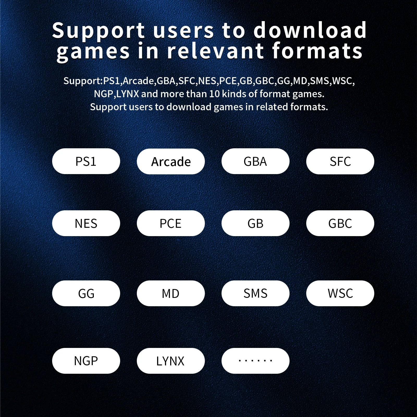 Other function: Support clock function;Music player function;Support connecting to the computer to add games;Wise auto shutdown function