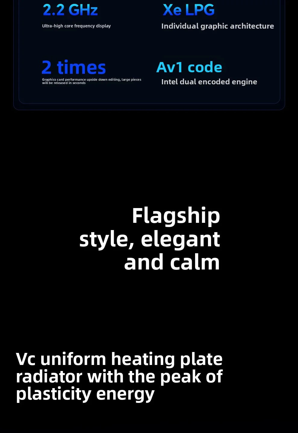 2.Intel Arc Graphics: 7 Xe-core, 2.2GHz frequency, Xe LPG architecture, 2x improved 3D graphics performance, with AV1 encoding and dual encoding engine—ideal for rendering, graphic editing, and smooth 4K experiences.