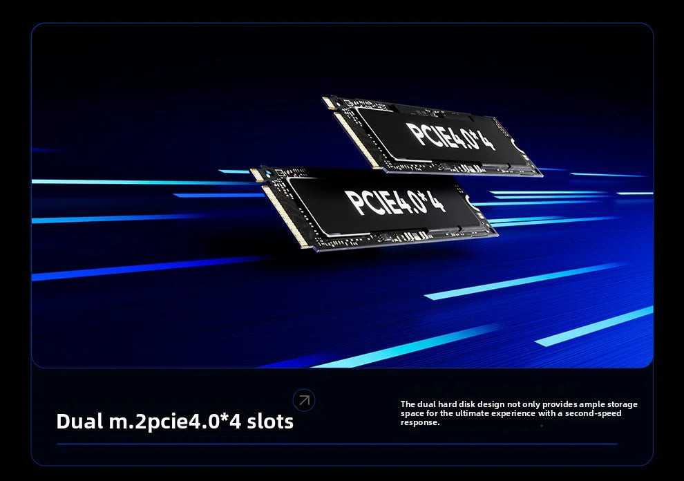 3.Dual-channel DDR5-5600MHz memory (pluggable design for flexible expansion) + dual M.2 PCIe 4.0*4 slots for high-speed storage, ensuring seamless multitasking and rapid response.