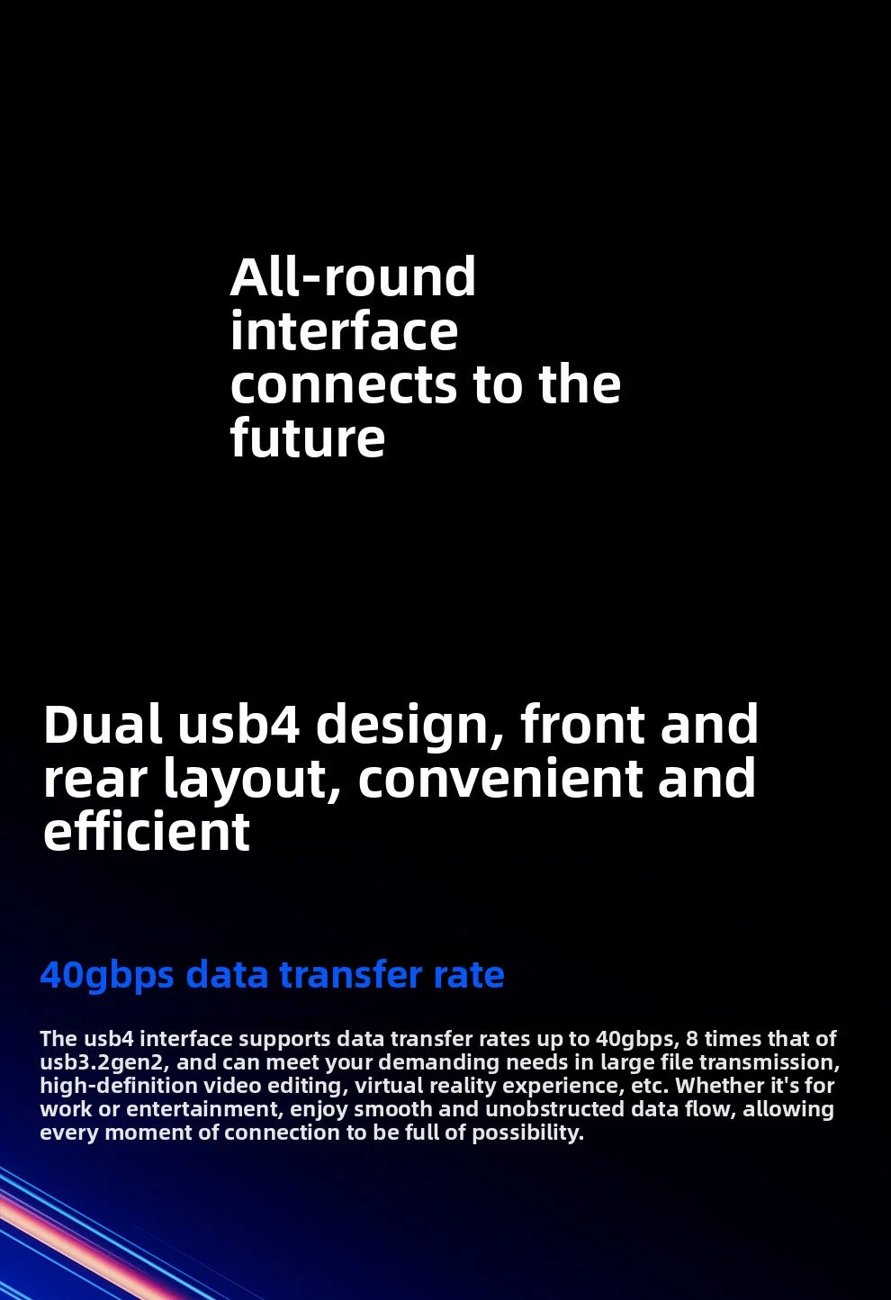 3.Supports triple-display output (2× USB4 + 1× HDMI) for immersive multitasking.