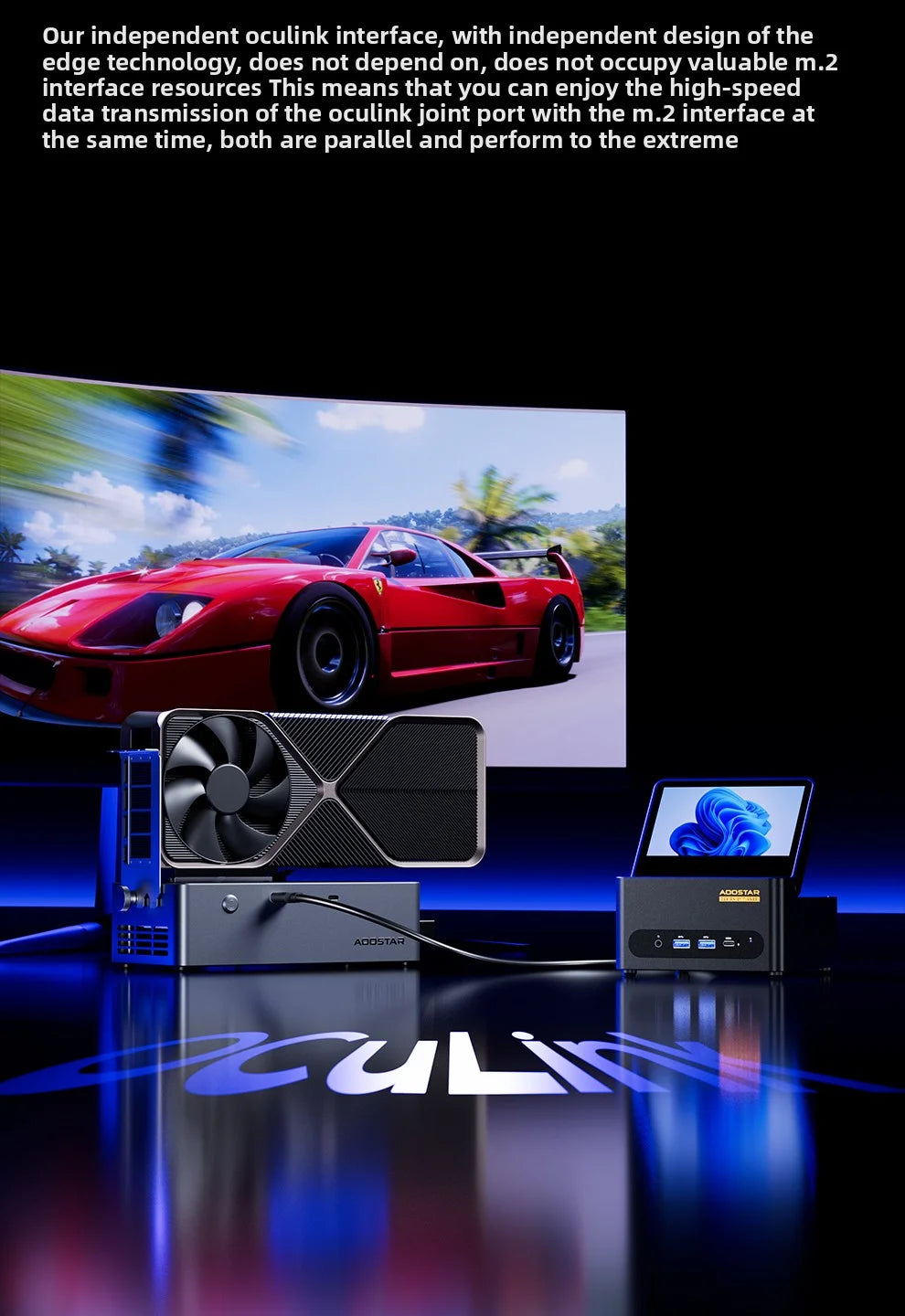 2.Rear Panel: 1× DC power input, 1× USB4 (40Gbps, supports PCIe 4.04 for eGPU dock), 2× 2.5G Ethernet ports, 1× HDMI, 1× OCuLink (PCIe 4.04 for external GPU, non-hot-swappable), 2× USB 3.2 Gen2 (10Gbps).