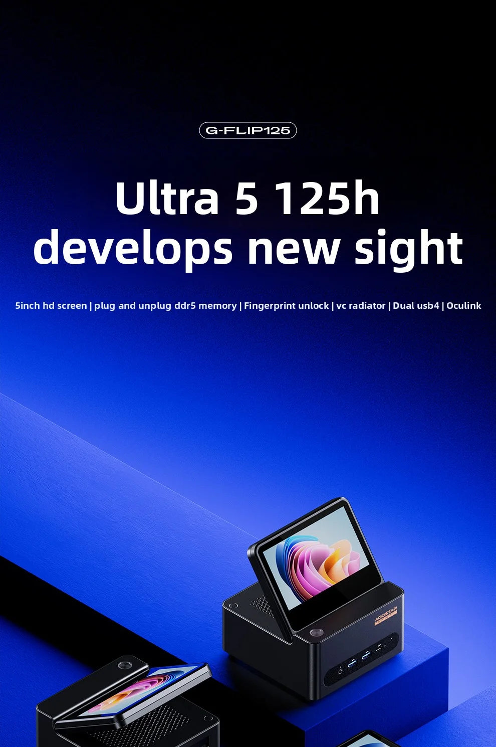 AOOSTAR G-FLIP Intel Core Ultra 5 155H Mini PC Windows 11 DDR5 Dual Channel NVMe M.2 SSD WIFI7 Desktop Office Gaming Computer
