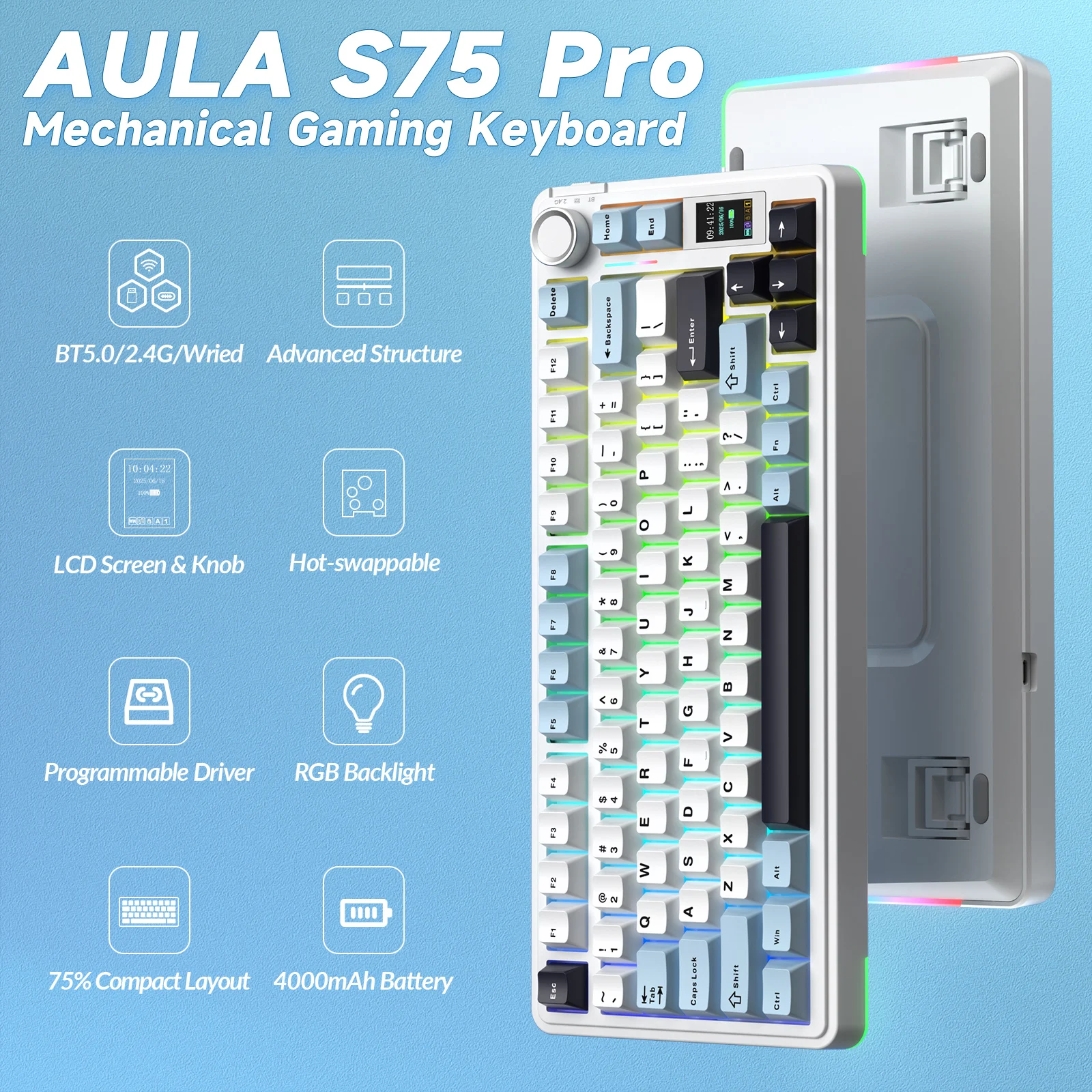 AULA S75pro Wireless Keyboard Tri-mode RGB Gaming Keyboard Hot Swap PBT Keycaps with Macro Software