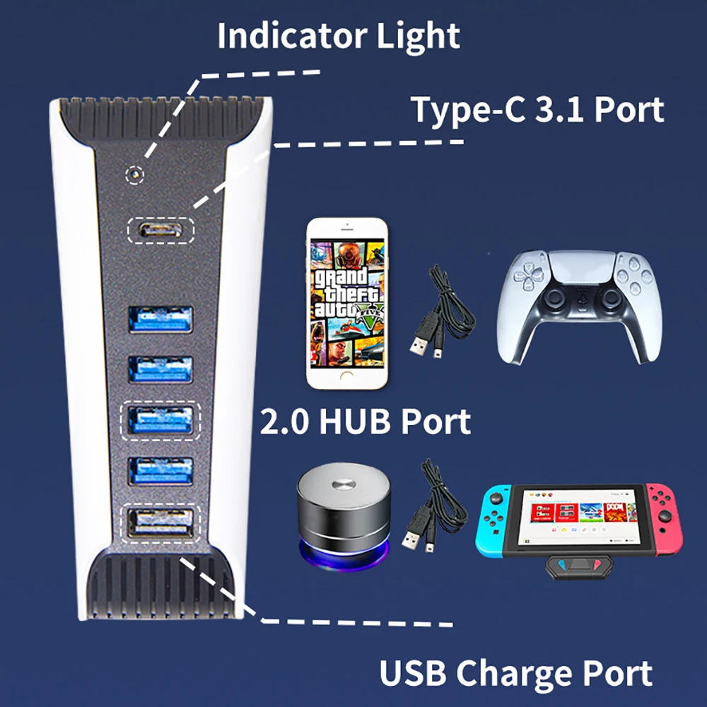for PS 5 PS5 Console USB Hub 1 to 5 USB2.0 Splitter Expander HUB Adapter 5 Ports for Play Station PS5 Game Host Accessories