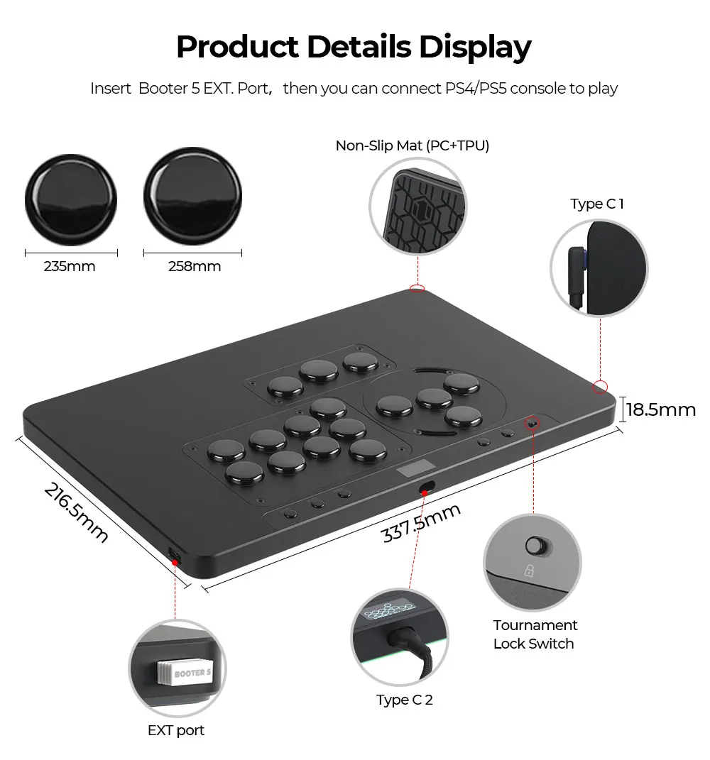 Haute42-COSMOX X Series Leverless Controller Replaceable Module Joystick Keyboard Arcade For PC/ Ps4 / Ps5 Switch Steam Hitbox