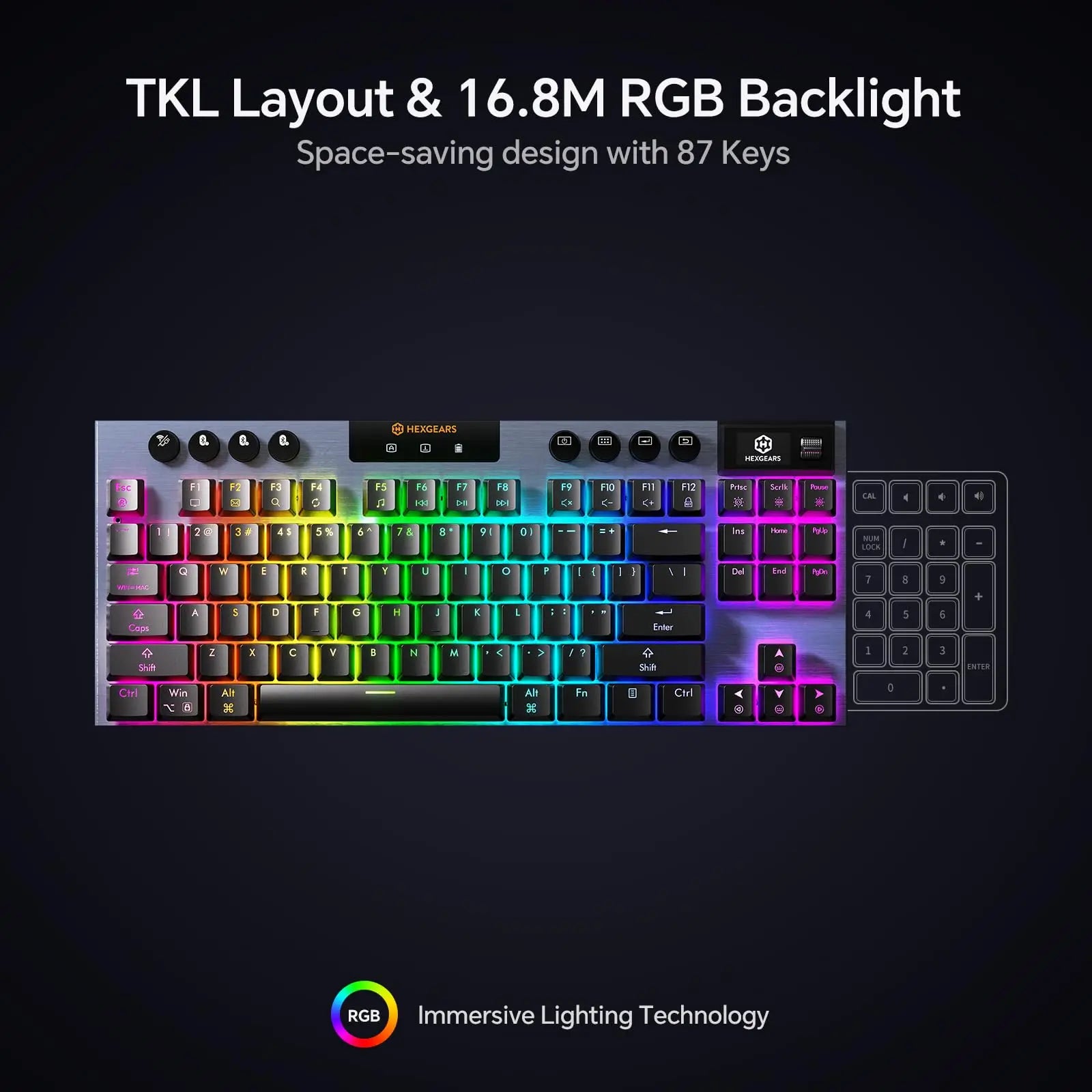 【87 Keys with RGB Backlight】The optimized 80% compact TKL layout with 87 keys offers a space-saving design without sacrificing functionality. Enjoy stunning 16.8M RGB lighting and immersive lighting technology for a personalized, vibrant gaming experience, while keeping your setup neat.