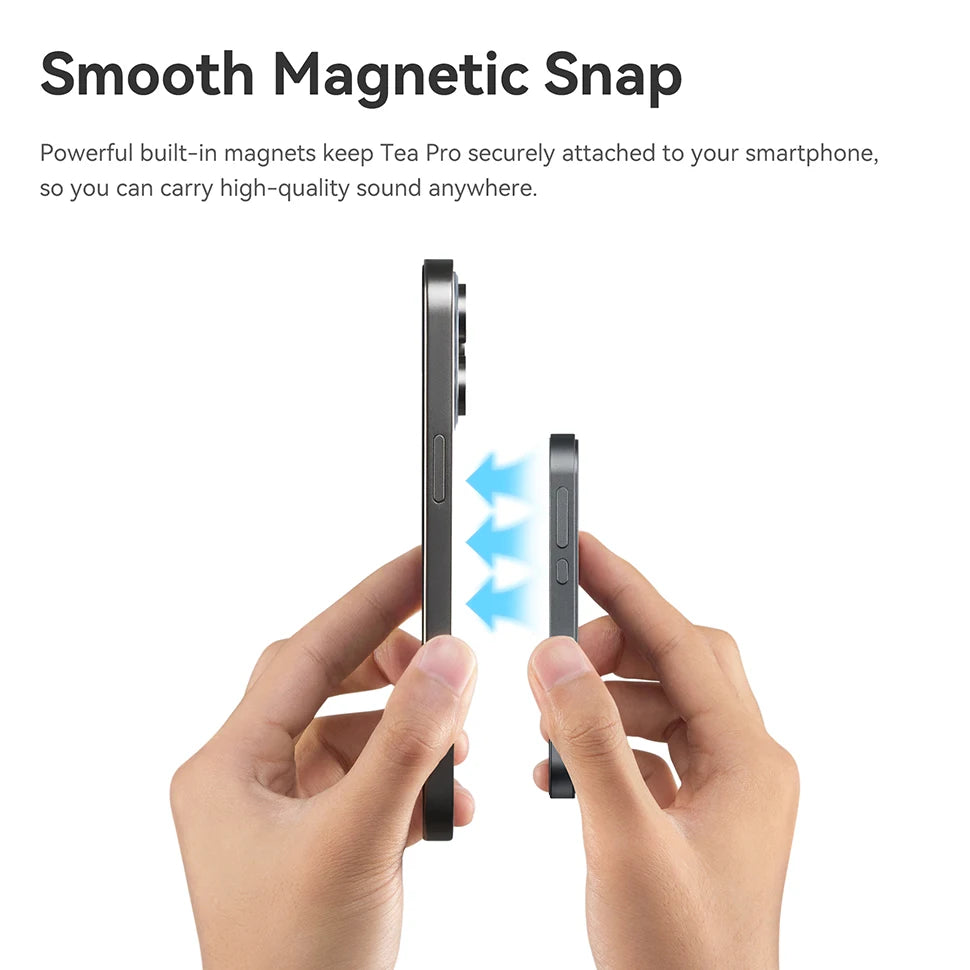 Tea Pro MagSafe – Snap, Play, Protect – Strong magnets hold Tea Pro securely on iPhone 12–16, delivering premium sound wherever you go. The smooth, wear-resistant leather back fights scratches and stains while eliminating annoying scraping. MFi-certified magnetic docking ensures perfect alignment for a secure and stylish fit.