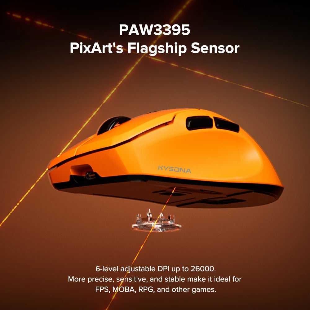 KYSONA Uranus PRO Wireless Gaming Mouse Ergonomic Mouse PAW3395 54g 8KHz Polling Rate 26000DPI For Right Big Hand PC Gamer
