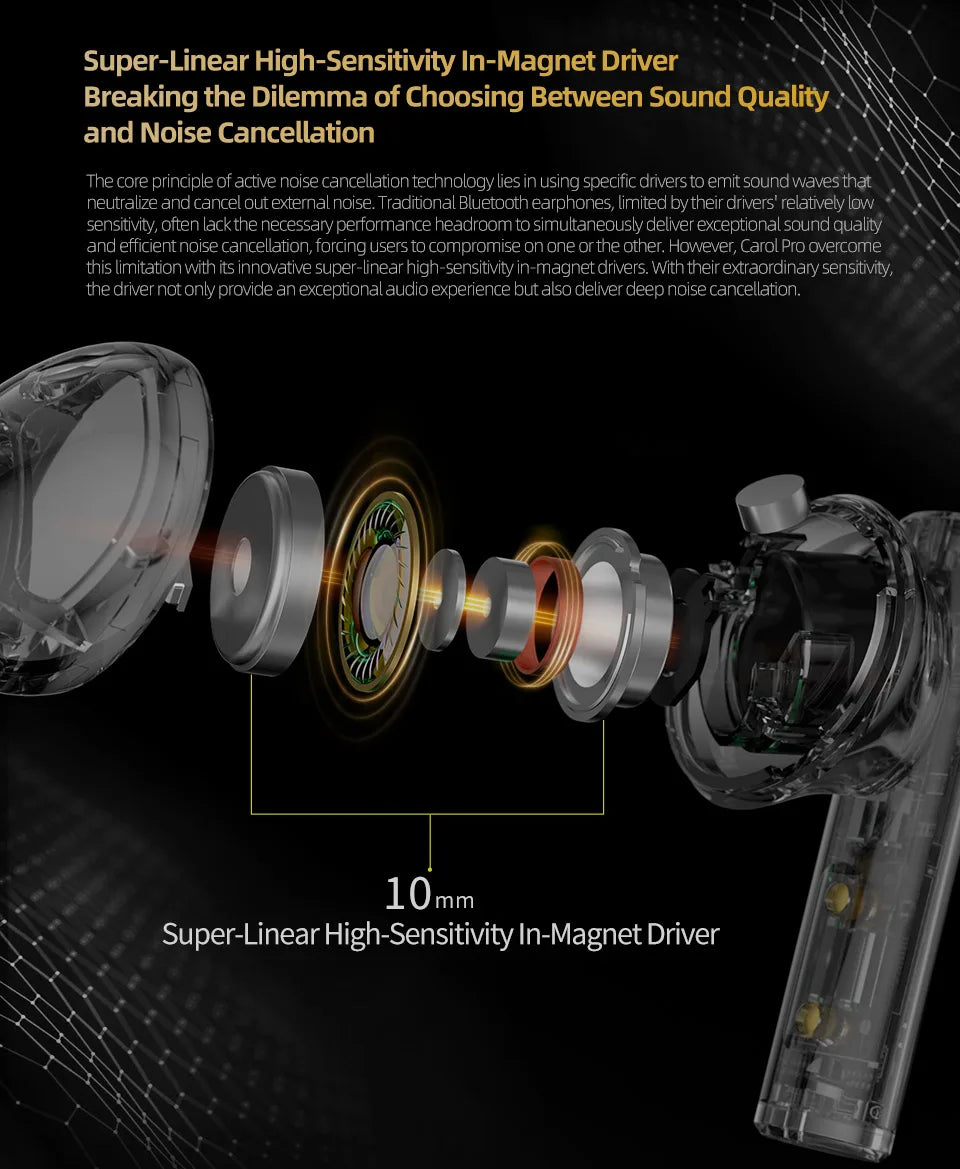 KZ Carol Pro ANC True Wireless TWS Bluetooth 5.4 Earphone 6 Mics Active Noise Canceling in-Ear waterproof Stereo Earbuds