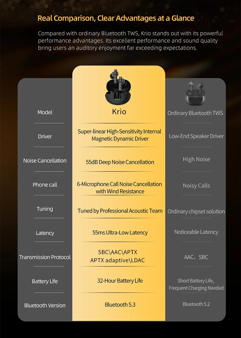 KZ Krio TWS Lossless headphones Sound quality Dual motor Redefines Professional-grade audio Bluetooth 5.3 headphones