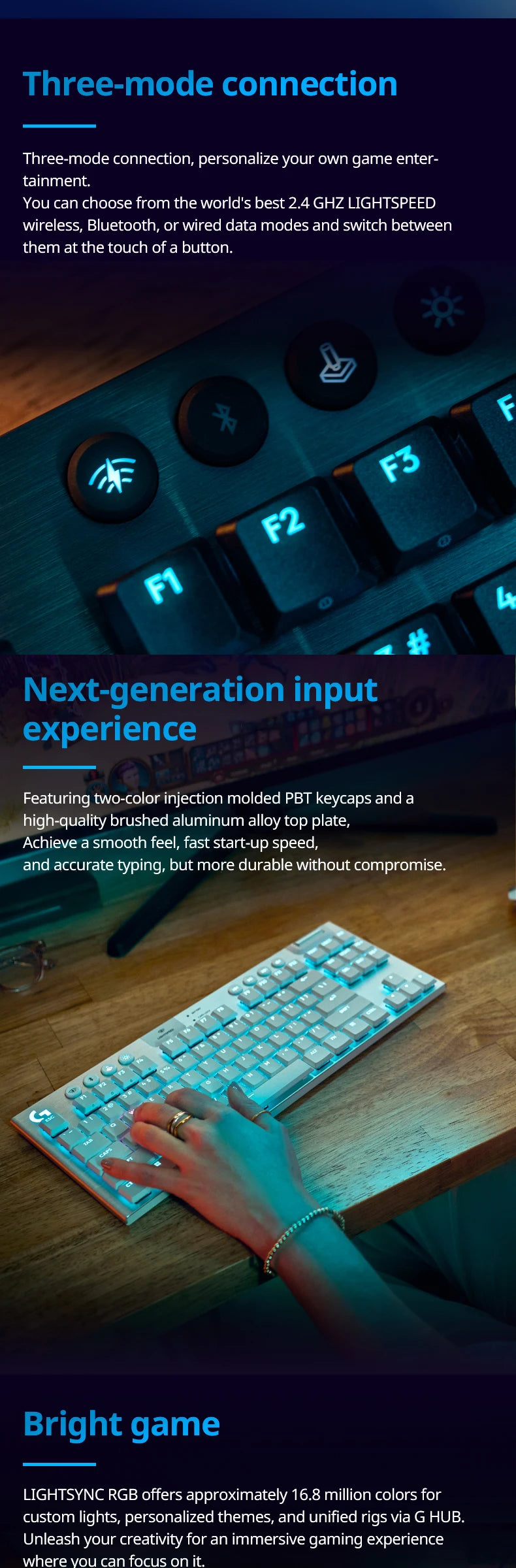 Logitech G915x Tkl|Ultra-Thin Design:At just 22.5mm thick, the G915X TKL offers a sleek profile for minimal desk clutter.