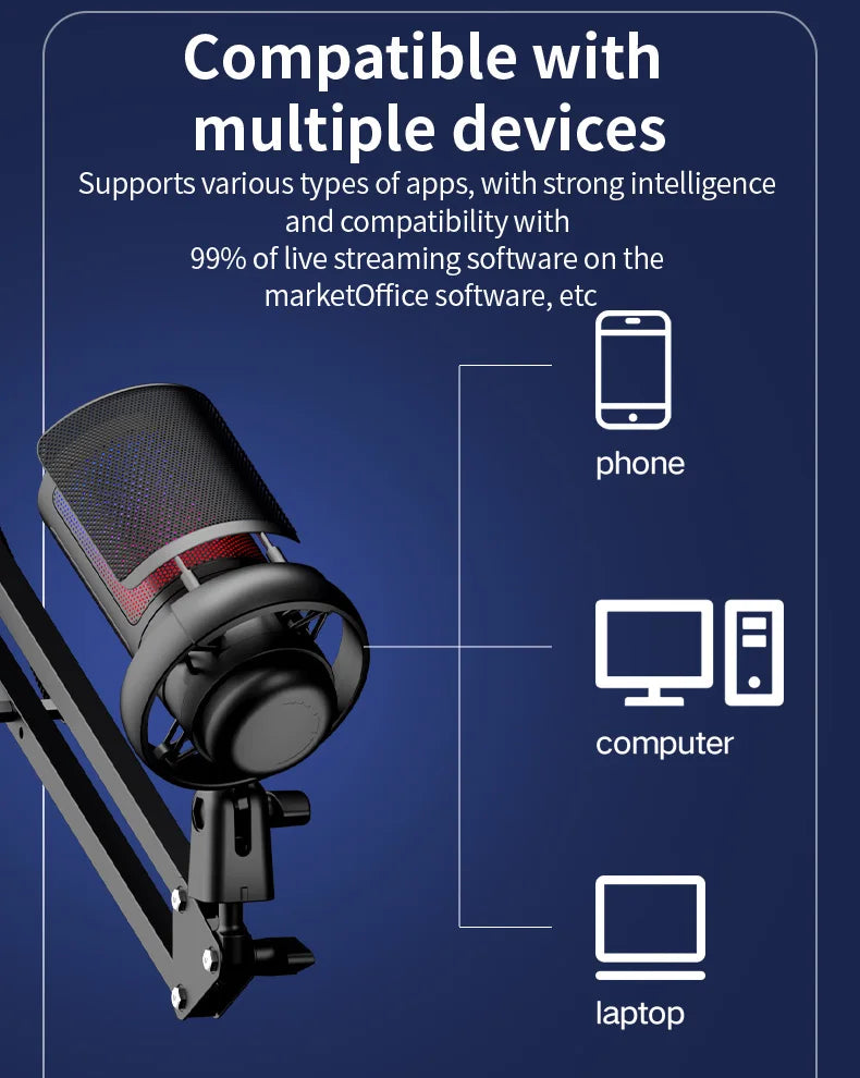 ME6S USB Condenser Gaming Professional Podcast Microphone Studio Recording Microphone Ampliant RGB Gaming Microphone