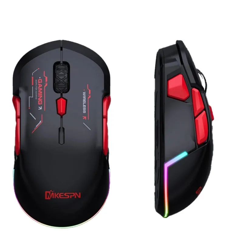 MKESPN W12 10-button Macro Gaming Mouse Both Hand Wireless Bluetooth Multi-channel Tri-mode Large RGB Ergonomic Ambidextrous