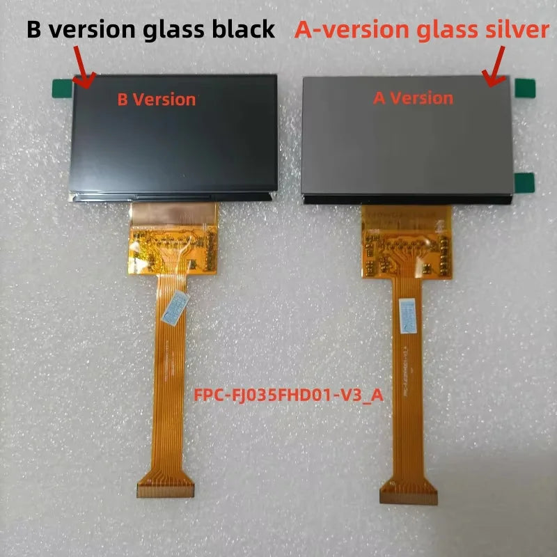 The FPC-FJ035FHD01-V3-A display screen is divided into A and B versions, with the main difference being the glass color. The A version has a silver glass color, while the B version has a black glass color. The two programs are completely incompatible with different polarization angles Please understand.