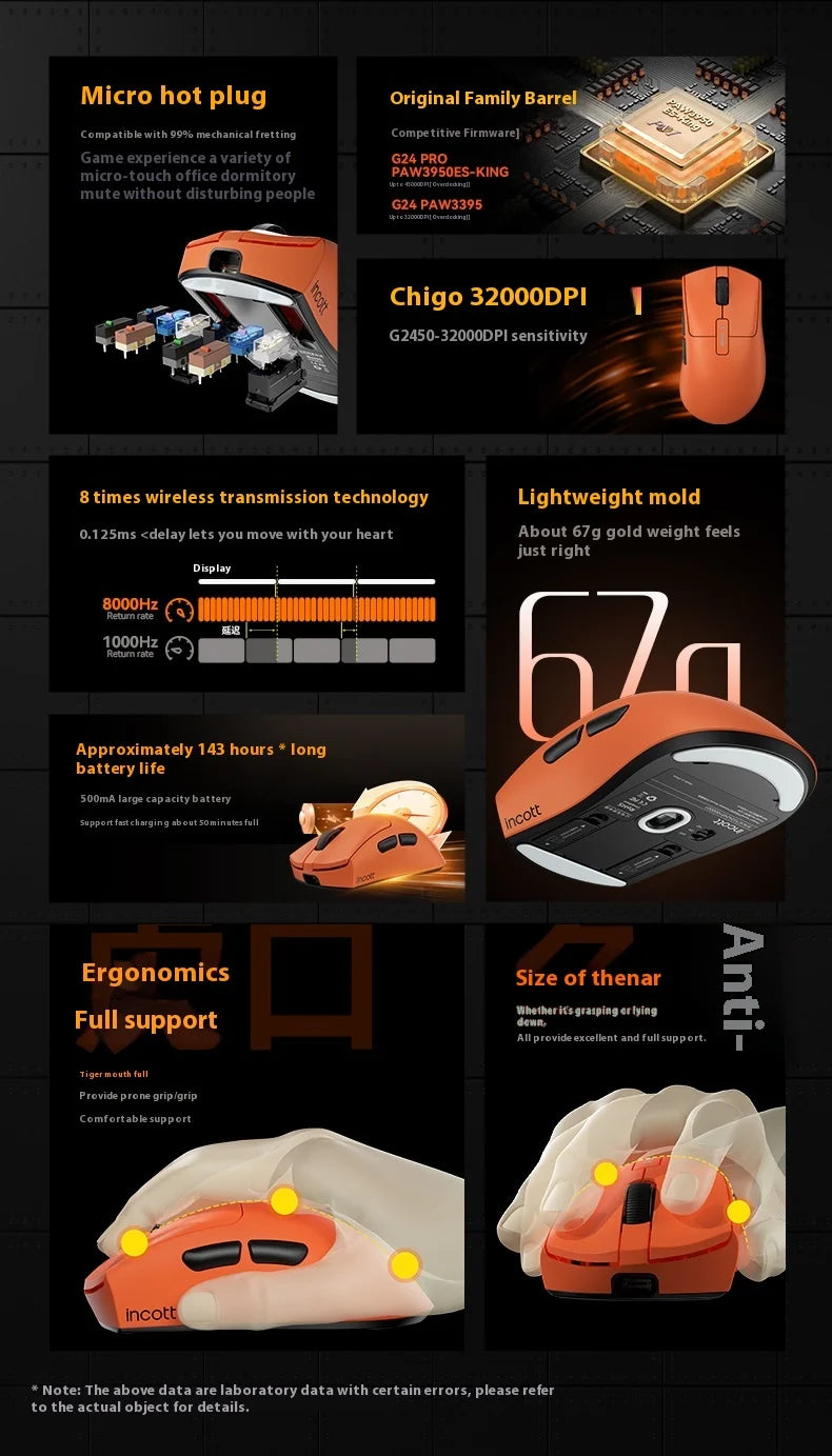 New Original Incott G24 Pro Wireless Mouse Dual Mode 8k Paw3950 Sensor Fast Charge Wireless Gaming Mouse Custom Mice Pc Gamer G