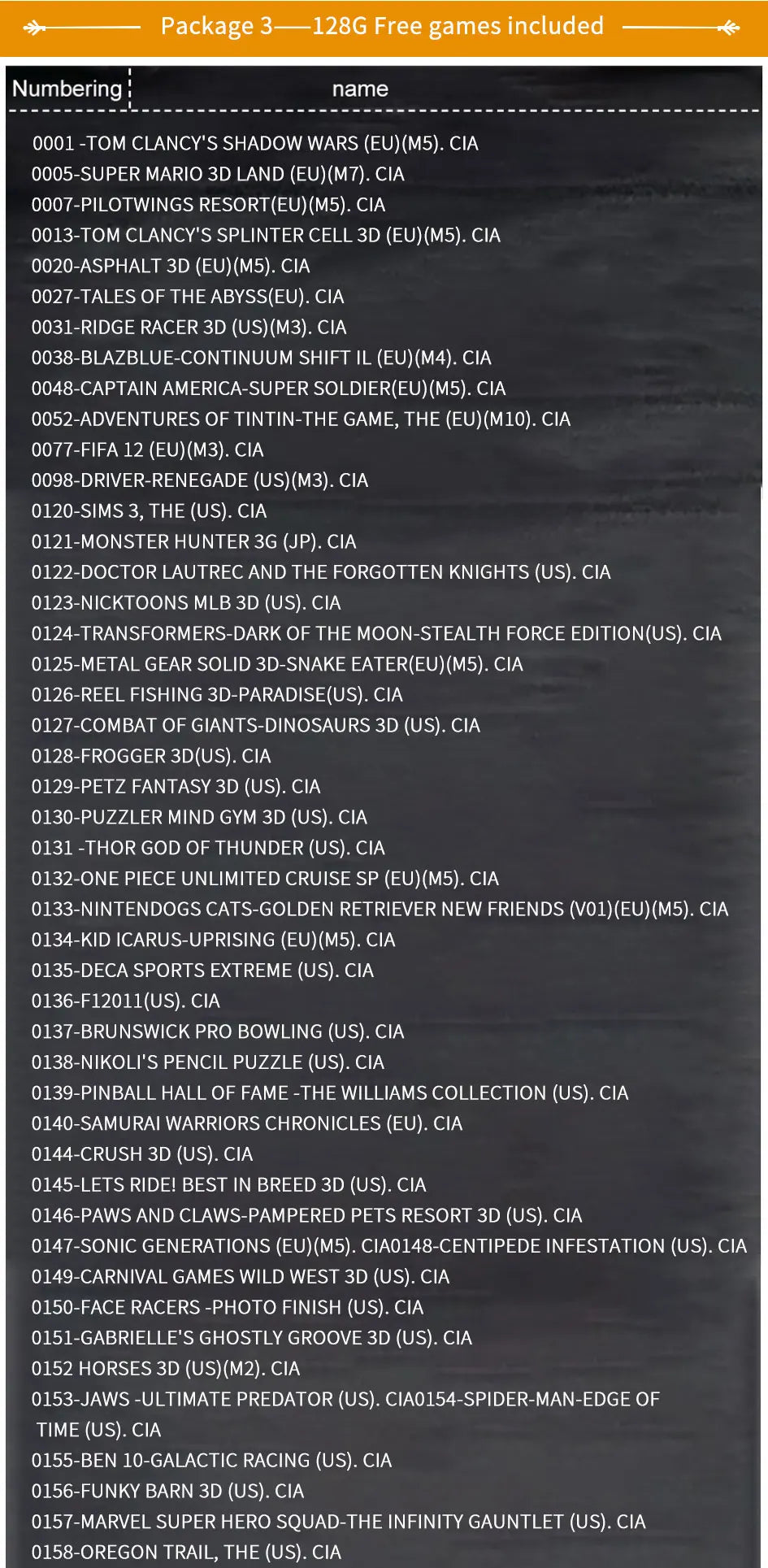 2.Because of different languages,we can only install the English version games. Scroll down the list of specific games to review. (Warm Tip: Each memory card can only be used on one game console! If you need to replace another new memory card, please re-flash the machine and re-import the games! Seller is not responsible for the system issues caused by the buyer who replacing the card by themselves!)