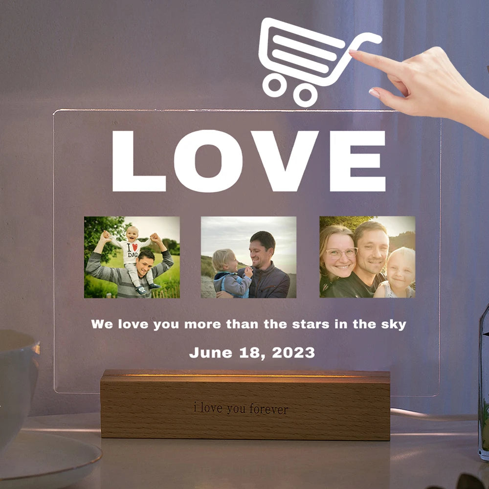 Personalized Custom Photo Text 3D Acrylic Lamp Customized Bedroom NightLight for MOM DAD LOVE Family Birthday Christmas Day Gift