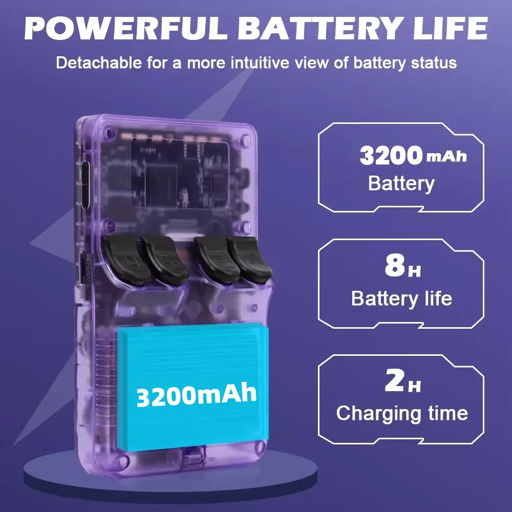 With 15000+ classic games, 3.5-inch IPS display . RK3326 1.5Ghz chip, Aroks System,Zero latency, no ghosting.The handheld game console supports OTG 2 Player, relive classic childhood games with friends and family!