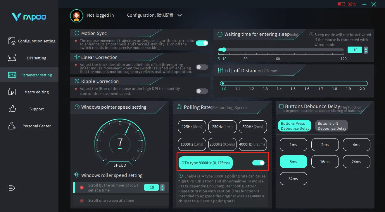 (Please note that 8K Wireless Polling Rate Activated via Driver Only, as shown in the following picture):
