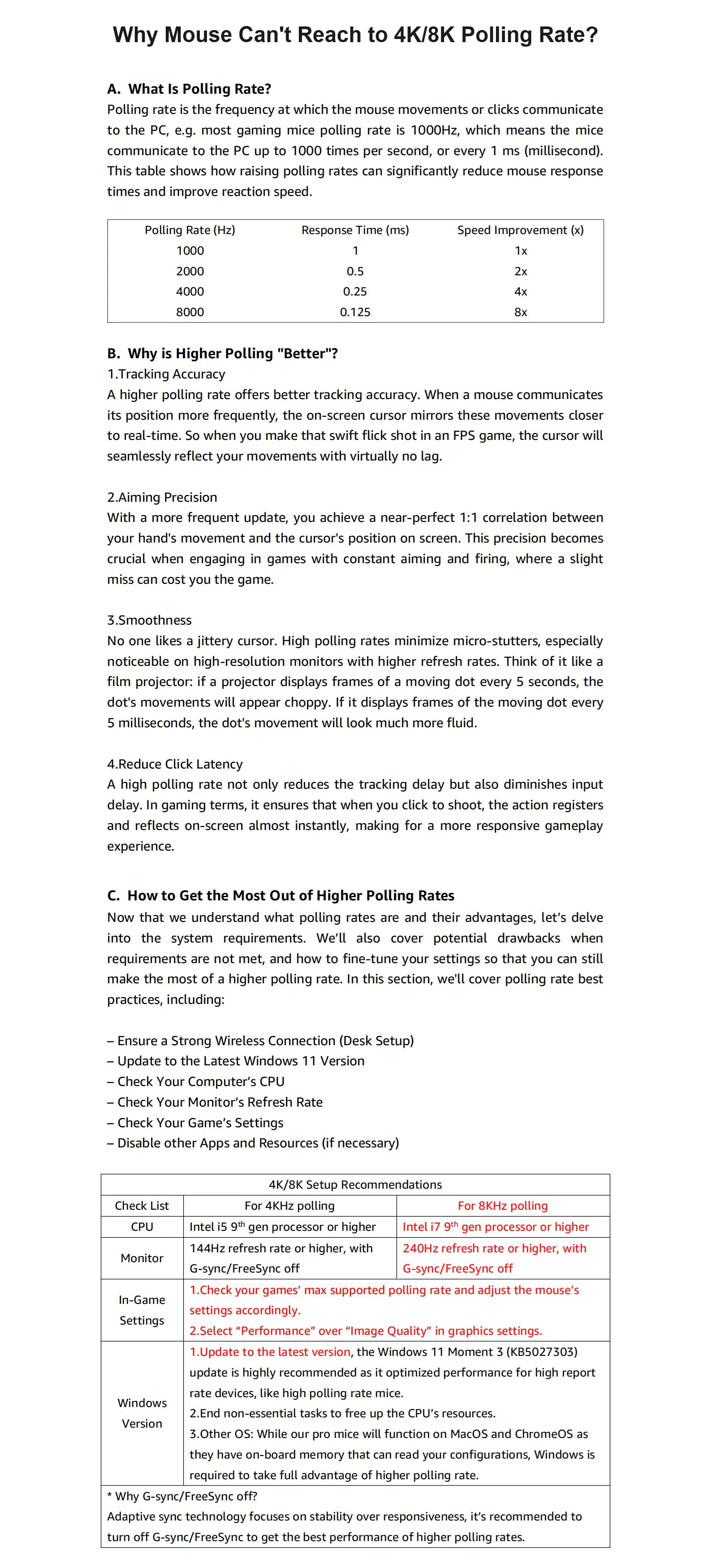 Polling Rate (Wireless mode) :8000 (OTA Update)/4000/2000/1000/500/250/125Hz