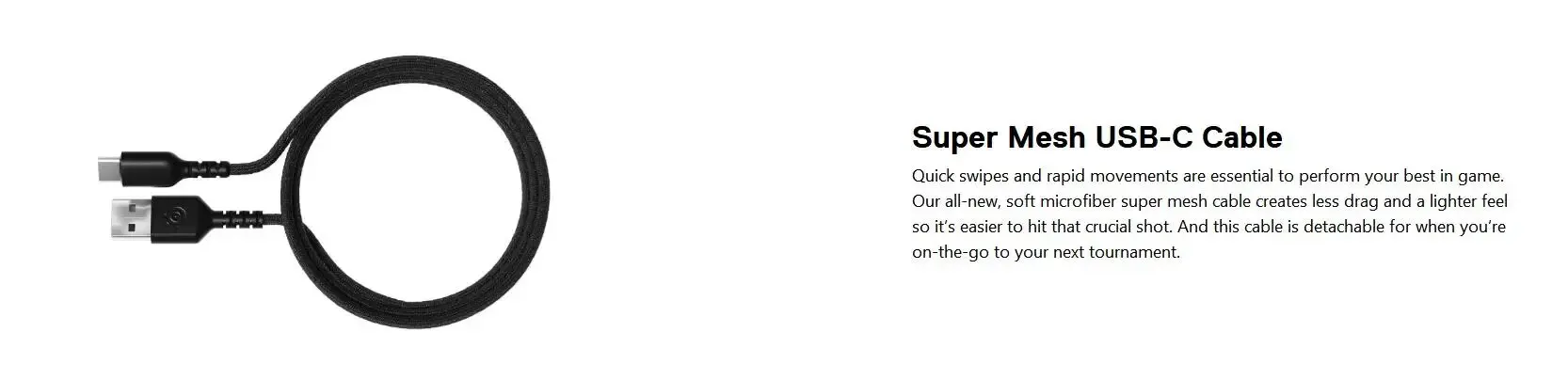 Quick swipes and rapid movements are essential to perform your best in game. Our all-new, soft microfiber super mesh cable creates less drag and a lighter feel so it’s easier to hit that crucial shot. And this cable is detachable for when you’re on-the-go to your next tournament.