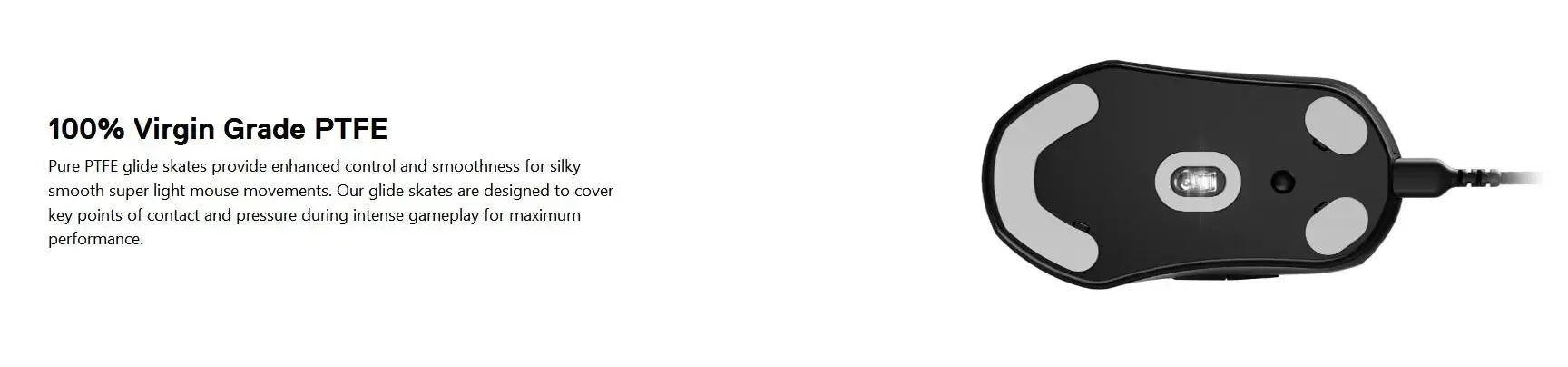 Pure PTFE glide skates provide enhanced control and smoothness for silky smooth super light mouse movements. Our glide skates are designed to cover key points of contact and pressure during intense gameplay for maximum performance.