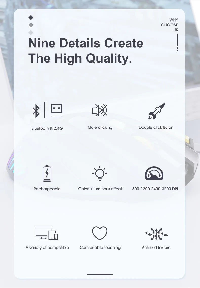 UTHAI GW-X7 Laptop accessories 7-key double tap free 2.4G silent rechargeable colorful breathing light wireless gaming mouse