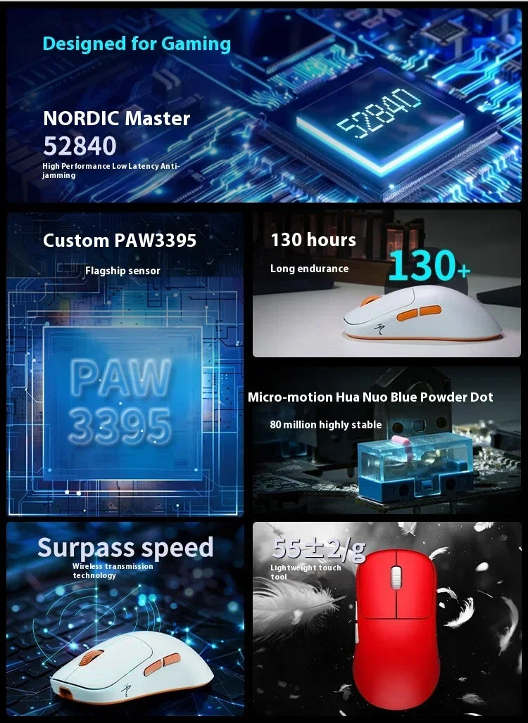 Sensor model: Pixart 3395 (26000 DPI|650 IPS|50G)