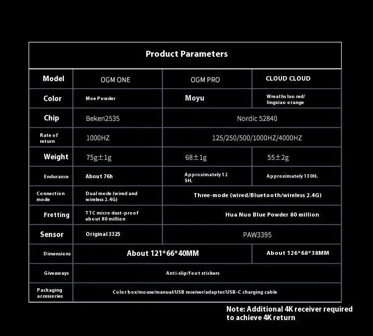 Connection methods: Wireless 4K, Wireless 2.4G, Wired, Bluetooth