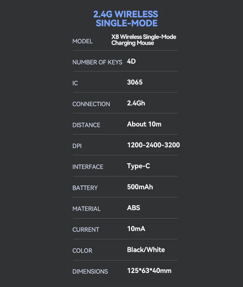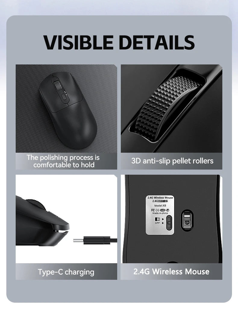 Warvank X8 Wireless Gaming Mouse 500 mAh TYPE-C Rechargeable Office Mouse Suitable for Laptop Desktop Computers