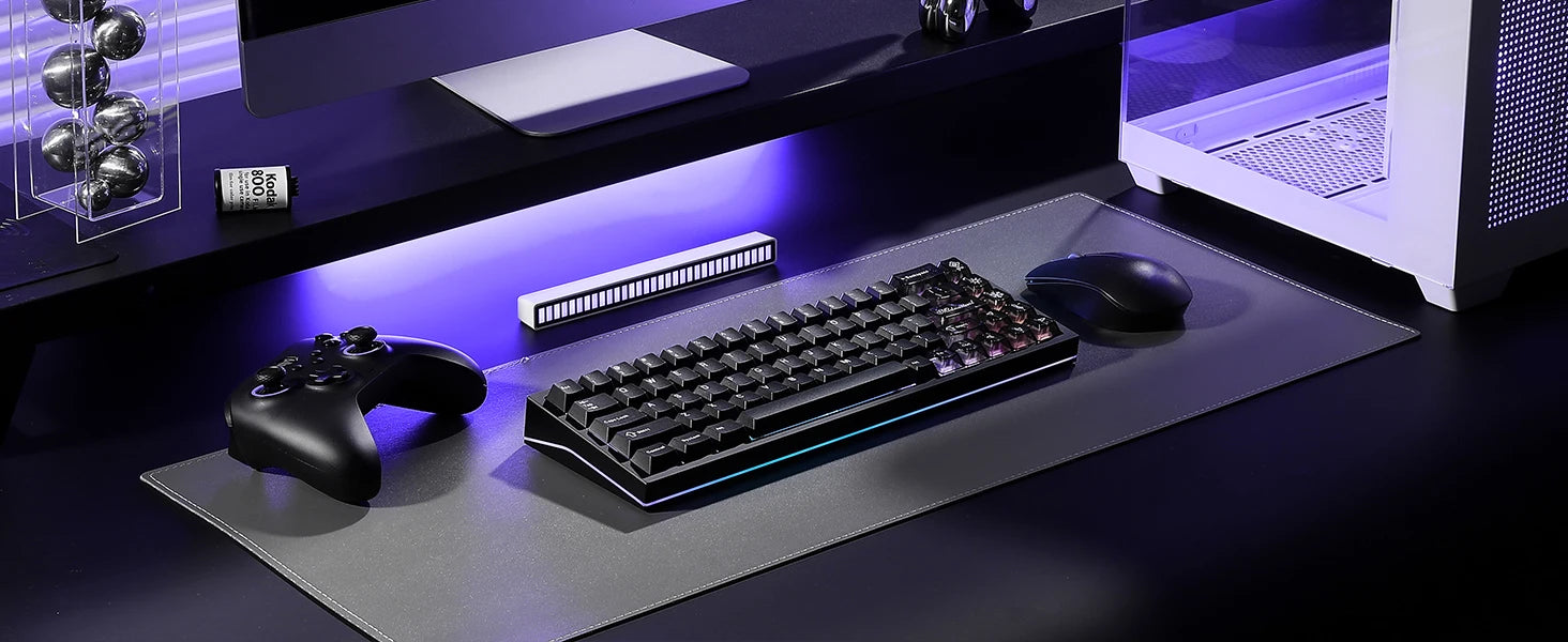 With 16.8 million RGB backlit and south-facing LEDs, the AL65 light-up keyboard offers vibrant lighting effects and 360° side-surround illumination. The hollow design of the gaming keyboard wireless enhances the lighting’s visual appeal, while additional transparent PC keycaps add further customization options. As a gaming accessory, this creamy mechanical keyboard is perfect for gaming in dark environments, this RGB keyboard ensures an immersive experience for gaming setup, gamers, and RGB enthusiasts.